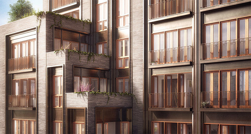 North-facing, private cascading terraces on floors fourteen through seventeen.